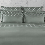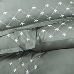 Комплект "Александрия" выполнен из сатина премиум класса, мягкой натуральной и прочной ткани. Благодаря особому способу переплетения хлопковых волокон, приобретает гладкую и блестящую текстуру, напоминающую шёлк. При этом ткань не скользит и обеспечивает хорошую терморегуляцию. Комплект украшен элегантной классической вышивкой в виде ромбов с растительными элементами в углах.