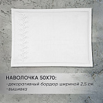 • 40х60 см. (для ортопедической подушки) с бордюром шириной 2,5 см., декорирована вышивкой.