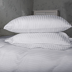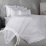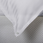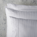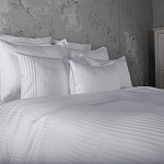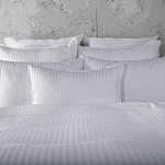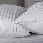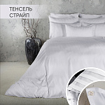 Комплект выполнен из ткани тенсель страйп однотонный, ширина полоски 1 см. Благодаря особому плетению, ткань похожа на шелк, но не скользит. Преимущество ткани в том, что она удерживает прохладу в жару и согревает в холод. Ткань обеспечивает комфортную температуру тела во время сна.