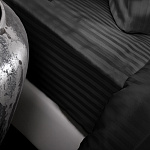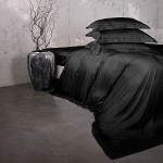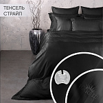 Комплект выполнен из ткани тенсель страйп однотонный, ширина полоски 1 см. Благодаря особому плетению, ткань похожа на шелк, но не скользит. Преимущество ткани в том, что она удерживает прохладу в жару и согревает в холод. Ткань обеспечивает комфортную температуру тела во время сна. Комплект дополнен декоративным бордюром шириной 5 см. и медальоном из ракушечника, а также имеет вышивку бренда.