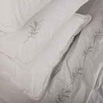 Комплект украшен нежным хлопковым кружевом и декоративной вышивкой (растительный орнамент).