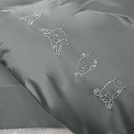 Пододеяльник украшен вышивкой 4 невыспавшихся совят. Застегивается на кнопки скрытые планкой.