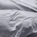 Пододеяльник украшен вышивкой 4 невыспавшихся совят. Застегивается на кнопки скрытые планкой.