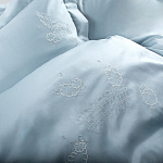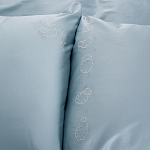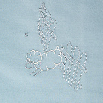 Пододеяльник - украшен вышивкой прыгающих через забор милых барашков. Дизайн вышивки продуман так, что ее можно сделать акцентом в верхней или нижней части пододеяльника. Именно поэтому застежка выполнена с боку пододеяльника и скрыта внутри. Застегивается на кнопки.