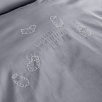 Пододеяльник - украшен вышивкой прыгающих через забор милых барашков. Дизайн вышивки продуман так, что ее можно сделать акцентом в верхней или нижней части пододеяльника. Именно поэтому застежка выполнена с боку пододеяльника и скрыта внутри. Застегивается на кнопки.