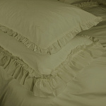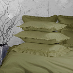 Комплект украшен широким рюшем, который не требует обработки благодаря особому крою, а все декоративные швы выполнены шелковистыми нитями;