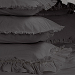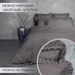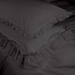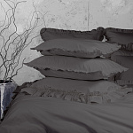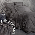 Комплект украшен широким рюшем, который не требует обработки благодаря особому крою, а все декоративные швы выполнены шелковистыми нитями;