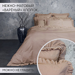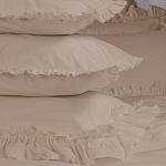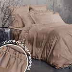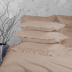 Комплект украшен широким рюшем, который не требует обработки благодаря особому крою, а все декоративные швы выполнены шелковистыми нитями;