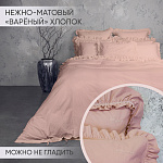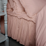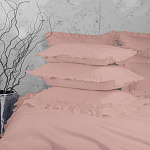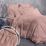 Комплект украшен широким рюшем, который не требует обработки благодаря особому крою, а все декоративные швы выполнены шелковистыми нитями;