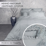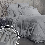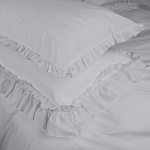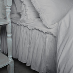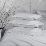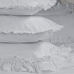 Комплект украшен широким рюшем, который не требует обработки благодаря особому крою, а все декоративные швы выполнены шелковистыми нитями;