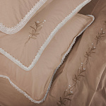 Комплект украшен нежным хлопковым кружевом и декоративной вышивкой (растительный орнамент).