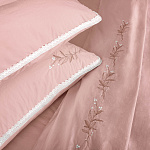 Комплект украшен нежным хлопковым кружевом и декоративной вышивкой (растительный орнамент).